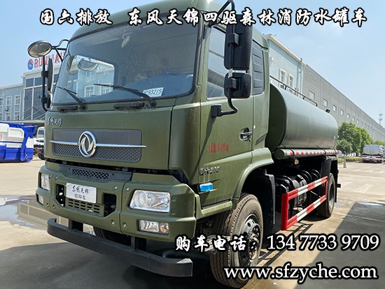東風(fēng)天錦四驅(qū)森林消防灑水車_國(guó)六排放潤(rùn)知星牌SCS5164GPSDFV6型四驅(qū)越野綠化噴灑車采用DFV2163GP6DJ型國(guó)六排放東風(fēng)天錦四驅(qū)越野底盤,東風(fēng)天錦D530一排半駕駛室,4×4驅(qū)動(dòng),康明斯B6.2NS6B210國(guó)六發(fā)動(dòng)機(jī)210馬力,最大扭矩850N.m/1100-1700rpm,排量6.2L、韶齒手動(dòng)六檔變速箱,東風(fēng)德納車橋,前驅(qū)動(dòng)橋4.5噸,后橋10噸,10.00R20輪胎,軸距4500mm/4700mm,電動(dòng)玻璃,方向助力,斷氣剎,ABS,大燈自動(dòng)調(diào)節(jié),自動(dòng)調(diào)整臂,選裝原廠空調(diào)。罐體采用優(yōu)質(zhì)碳鋼Q235板材,板材厚度4mm,罐體容積8.7立方,安裝夾心取力器,后置泵箱,消防栓接口左右各一個(gè),消防炮采用PS30-50D消防水炮,流量40L/S/1.0MPa 水射程:≥50m,消防泵采用常壓消防泵型號(hào):CB10/40車用消防泵,流量:40L/s,壓力:1.0MPa,駕駛室頂部安裝長(zhǎng)條警燈帶喊話器,兩側(cè)噴涂白色森林消防字樣。