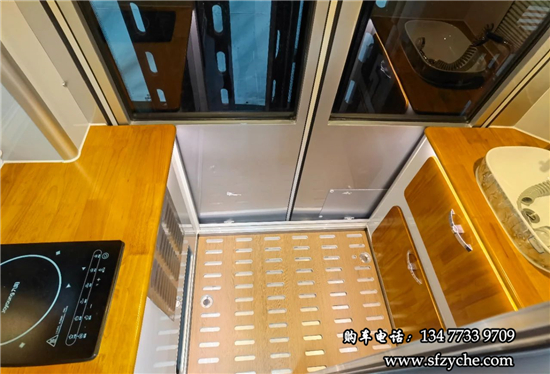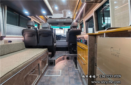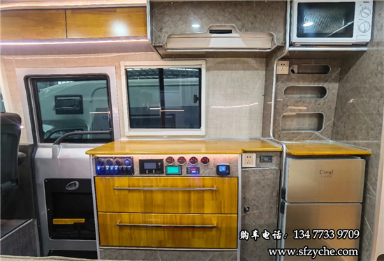 得益于方正的車身,車內(nèi)空間非常寬敞,內(nèi)寬可達2米。布局方面從前往后依次是駕駛區(qū)、乘坐區(qū)、生活區(qū)和尾部的廚衛(wèi)區(qū)域。整車核載5人,車廂中部采用2+1座椅布局,全部帶有扶手和頭枕,乘客座椅全部朝前設計,增加了乘坐的舒適度。