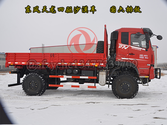 全新國六東風四驅(qū)六驅(qū)沙豹沙漠車為特殊行業(yè)精心打造,適合全地形無路區(qū)域的全時4×4、6×6驅(qū)動車型,選用康明斯9升國六發(fā)動機,動力涵蓋340---400馬力,動力強勁、性能可靠,采用7噸及10噸級雙級輪減前、后橋,離地間隙大、通過性好,前、中后橋配備輪間、軸間差速鎖裝置可適應(yīng)極惡劣道路狀況下的通過要求,先進的遠距離電控氣動裝置可實現(xiàn)高、低檔及前橋鎖止功能的轉(zhuǎn)換,多管旋流式三級空濾進氣系統(tǒng)可有效地阻止極細微的粉塵進入發(fā)動機,外接式中央充放氣裝置可同時或單獨快速調(diào)節(jié)輪胎氣壓,越野和沙漠輪胎的互換可使車輛通過性適合各種地形地貌,選裝前后液壓絞盤等裝置能使車輛在各種環(huán)境下保持良好的狀態(tài)及自救互救功能,沙漠車使用工況:用于無路地域的貨物運輸,適應(yīng)沙漠、浮土、戈壁、礫石、泥濘、山地、崎嶇、冰雪等路況。耐溫±45℃,可作為石油物探、地質(zhì)勘查、大地測量、文物考古、草原監(jiān)理、畜牧防疫、森林消防、邊境巡邏、沙漠旅游等行業(yè)用車,是改裝專業(yè)工程車如:地震儀器、爆破器材運輸、沙漠冷藏、沙漠隨車起重運輸、工程搶險、林業(yè)吊運、搶險救災(zāi)等車輛及越野房車的理想底盤。
