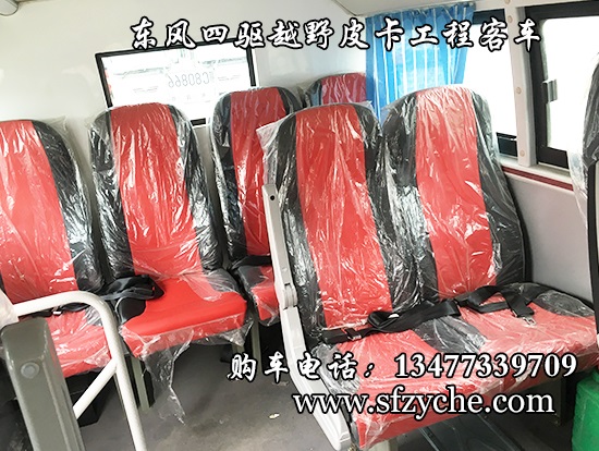 6.鋁花紋地板,中檔皮革座椅5-9個,整車座椅3點式安全帶,手動式外擺門,正副司機門,選裝東風(fēng)原廠派恩頂置空調(diào)