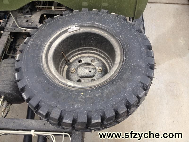 11R18型越野胎主要適用于軍用車輛行駛,可同時(shí)滿足軍用車輛在好路面上的高速行駛及在路況較差或無(wú)路情況下的越野行駛。該胎花紋采用無(wú)向塊狀設(shè)計(jì),主行駛面花紋溝深度較淺且以縱向花紋溝為主,橫向花紋溝寬度較小,可提高輪胎的高速行駛性能、乘坐舒適性和操作穩(wěn)定性;胎肩部位的花紋以橫向花紋溝為主,花紋溝較寬較深,在越野時(shí),對(duì)路面的抓著力強(qiáng)大,牽引力優(yōu)越、通過(guò)性能好,同時(shí)有利于花紋的散熱、排水和自潔性能。東風(fēng)越野胎:m.tongmeisiwang.com