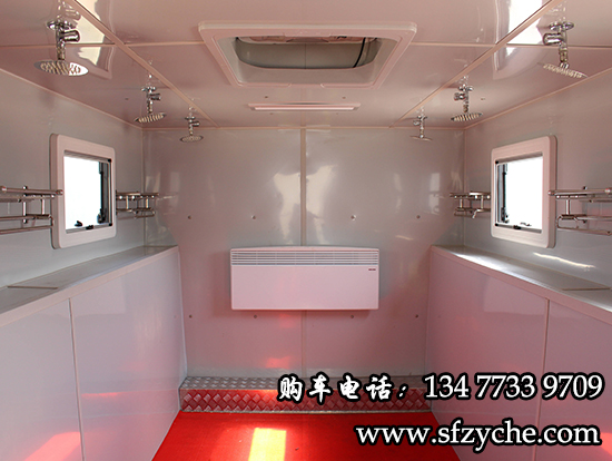 1、車上更衣,組織洗澡快捷方便。該淋浴車將淋浴室、更衣室、設備室全部設計在車上,每到一地組織洗澡,準備時間短,非?旖莘奖悖瑱C動能力更強。