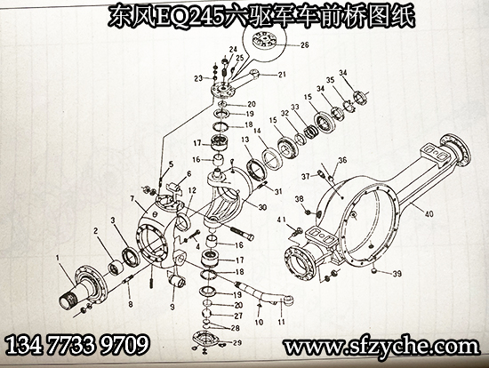 東風(fēng)EQ245六驅(qū)軍車(chē)前橋配件圖紙,今天給大家分享一下六驅(qū)245軍車(chē)前橋圖紙,方便大家修車(chē),東風(fēng)EQ245退役后大量運(yùn)用于內(nèi)蒙古,青海,新疆等戈壁灘,沙漠使用,為了大家好修車(chē),特此分享。先給大家普及一下EQ245和EQ240的區(qū)別,EQ245采用12R20越野輪胎,輪胎螺絲為8孔,常稱(chēng)大炮車(chē),車(chē)廂尺寸4.2米。EQ240采用11R18越野輪胎,輪胎螺絲6孔,車(chē)廂3.5米,常稱(chēng)小炮車(chē),有不懂的朋友隨時(shí)聯(lián)系。
