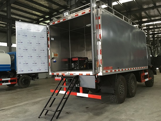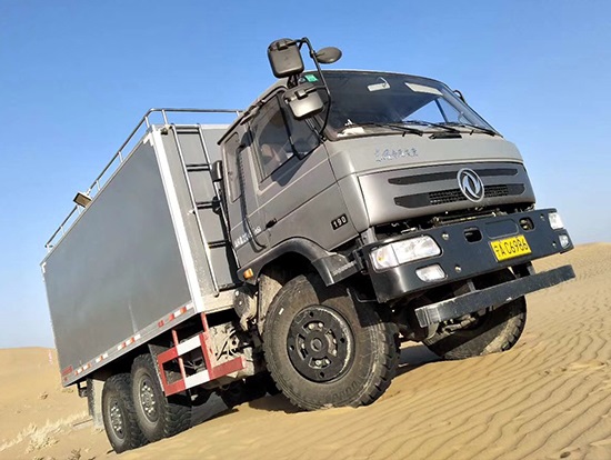 東風(fēng)六驅(qū)國(guó)五越野廂式車(chē)簡(jiǎn)介:采用東風(fēng)原廠六驅(qū)國(guó)五越野底盤(pán)EQ2220GD5DJ型,駕駛室為老款153,新款D913兩種可以選擇,康機(jī)190馬力帶增壓,機(jī)械式六檔變速箱,3.5噸軍檢分動(dòng)箱,4.5噸雙聯(lián)式軍用驅(qū)動(dòng)前橋,5噸軍用貫通式雙后橋,方向助力,離合助力,前橋介入高低檔均采用電控式,315/80R22.5越野輪胎,軸距3500+1250mm,ABS,隨車(chē)工具及備胎各一套。