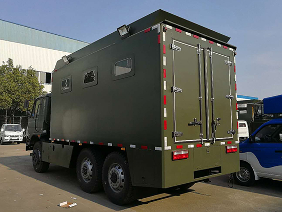 相關(guān)車型東風國五六驅(qū)越野自行式炊事車_東風軍用六驅(qū)炊事車_六驅(qū)野戰(zhàn)自行式餐廚車為部隊提供一種機動、高效的專用現(xiàn)場飲食保障裝備,滿足部隊平時及野外值勤時的主副食的飲食保障工作,并解決部隊行進中不停車做飯菜的需要及供應(yīng)飲用水的需求。六驅(qū)自行炊事車功能簡介:該裝備主要編配于部隊,為部隊官兵野外作業(yè)時提供良好的飲食保障:具有制作食品、保溫食品和儲存食品的空間與功能、并具有提供開水和餐具消毒的功能。