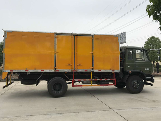 東風(fēng)國五四驅(qū)越野廂式車廂體材質(zhì):廂體為雙層金屬骨架結(jié)構(gòu),外部為冷扎鋼板,內(nèi)壁采用鋁合金板蒙面,夾層為隔熱阻燃材料填充,鋁花紋底板,側(cè)對(duì)開門,后雙開門,廂體尺寸6050×2360×2100(mm)
